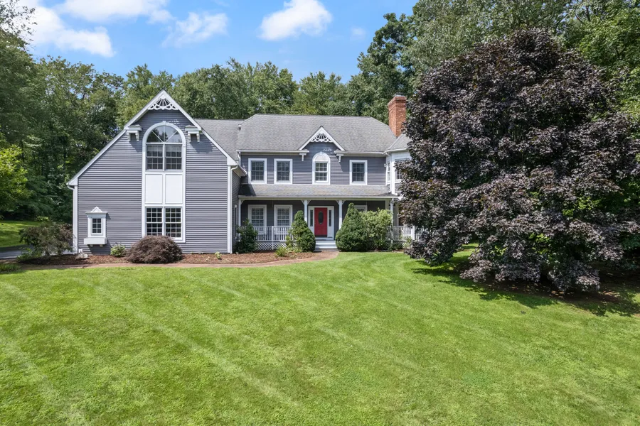 Offered for the first time since it was custom built, this spacious and well-appointed Colonial with Victorian styling has something for everyone. Upon entering, you'll be greeted with a formal dining room and formal sitting room with a fireplace and dedicated access to the covered front porch. The soaring ceilings with second floor catwalks will further impress as you enter into the living room with its floor-to-ceiling windows which overlook the backyard. The generously sized kitchen with ample cherry cabinetry is open to the living spaces, and has a slider to the rear deck, allowing for effortless entertainment, indoors or out. Rounding out the main floor is the laundry room, powder room, and an en-suite bedroom for guests or those who prefer one-level living. As you continue upstairs, the luxurious ambiance continues. The owner's suite is a serene retreat with its en-suite, walk-in closet, and sitting room in the rotunda with gorgeous inlaid floors. Three more bedrooms and a full bath will accommodate the needs of all. The bonus room with its built-ins and wet bar is currently used as an entertainment space and could be used as a 6th bedroom or in-law.