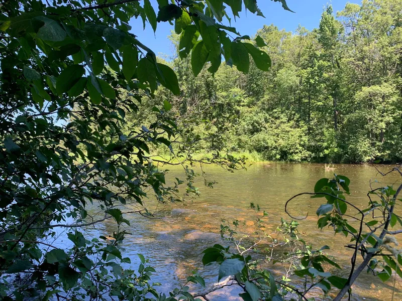 - A mix of mature hardwood trees and pine trees