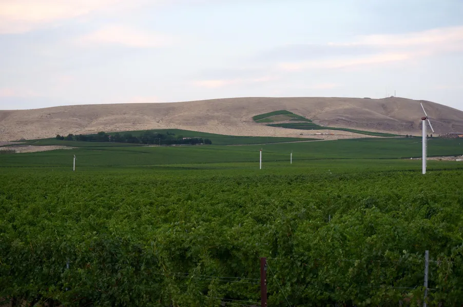 Some say Red Mountain Appellation has it all: slope, exposure, weather conditions, good air drainage, large swings between day and night temperatures, six wineries within a few miles, plenty of undeveloped land, gravelly soil with high calcium carbonate content and high pH (high alkalinity), both contributing flavor to grapes grown here. Sloping lands beneath the broad Red Mountain lie at the southeast end of the Yakima Valley, overlooking Benton City, where annual rainfall is only about six inches, and supplemental irrigation is usually provided a few months into the growing season. Wines made from Red Mountain fruit express the terroir with great strength and richness, while demonstrating exceptional balance of fruit, acidity, and tannin.