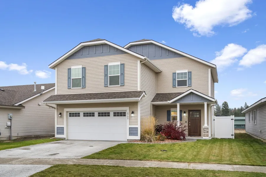 Beautifully maintained two-story home in a prime location-just minutes from Cheney, downtown Spokane, Fairchild AFB, and Amazon! The main floor welcomes you with a formal entry, a convenient half bath, and a bright, open layout. The kitchen shines with stainless steel appliances, quartz countertops, a large island with eating bar, pantry, and a slider to the patio-perfect for entertaining. Upstairs, enjoy a second living area, laundry room, and three bedrooms, including a primary suite with a walk-in closet and bathroom featuring double sinks, walk-in shower, and linen closet. Attractive shake and stone accents add great curb appeal. The garage shelving and storage shed stay for your convenience!