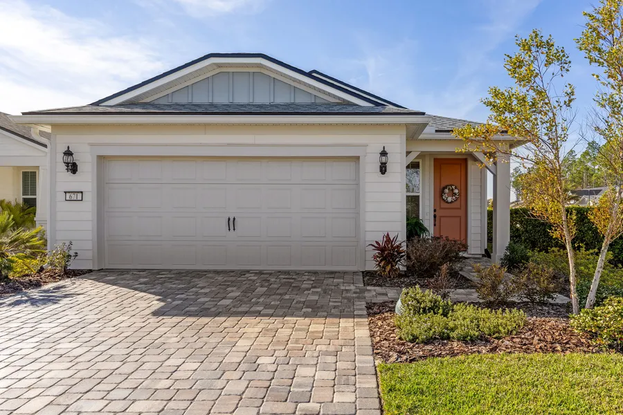 Stunning 3-Bed, 2-Bath Home in Premier Del Webb 55+ Community. Discover luxury living in this beautifully upgraded home, situated on a desirable corner lot with serene pond and fountain views. Just a short walk from the resort-style amenity center, this residence blends elegance, comfort, and active-adult convenience. Inside, you’ll find LVP flooring throughout, 10-foot ceilings, and 8-foot doors, creating an open and inviting ambiance. The gourmet kitchen features 42-inch cabinets, quartz countertops, a large island, and stainless-steel appliances, ideal for everyday living and entertaining. The home includes refined panel molding accents, including Wainscoting in the entry hallway, adding a sophisticated custom touch. Outdoor living shines with a screen-covered lanai and uncovered paver grilling patio, perfect for dining and relaxation. Additional exterior upgrades include a sealed paver driveway, walkway, lanai, and patio. The epoxy-coated garage floor provides durability and a clean, polished look, while the included water softener adds everyday comfort and convenience. Located in a top Del Webb community, residents enjoy access to a clubhouse, fitness center, pool, and a vibrant social calendar. This home offers resort-style living at its finest—beautifully upgraded, move-in ready, and designed for exceptional comfort and style.