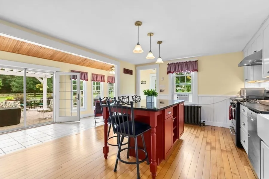 You will absolutely fall in love with this carefully updated antique farmhouse originally built by the well known Bisbee Family. This beautiful home is filled with such rich history, memories, and so much charm! TWO FIRST FLOOR BEDROOMS BEDROOMS with wide plank flooring, convenient laundry room, fireplace living room - dining room, and full bathroom complete the first floor. UPDATED OPEN CONCEPT kitchen that leads you into a sun drenched room filled with oversized windows and a radiant heated tile floor. French doors open up to a well complimented outdoor patio, a perfect place to enjoy the beautiful outside scenery & entertaining space. Framed by timeless stone walls, this meticulously cared for, spacious, one of a kind home, has a delightful floor plan that will accommodate today's lifestyle. The second floor has 2 recently renovated spaces that are a perfect combination of old charm exposed wood beams meeting new design. Top schools, easy access to highways, amenities, beach rights.