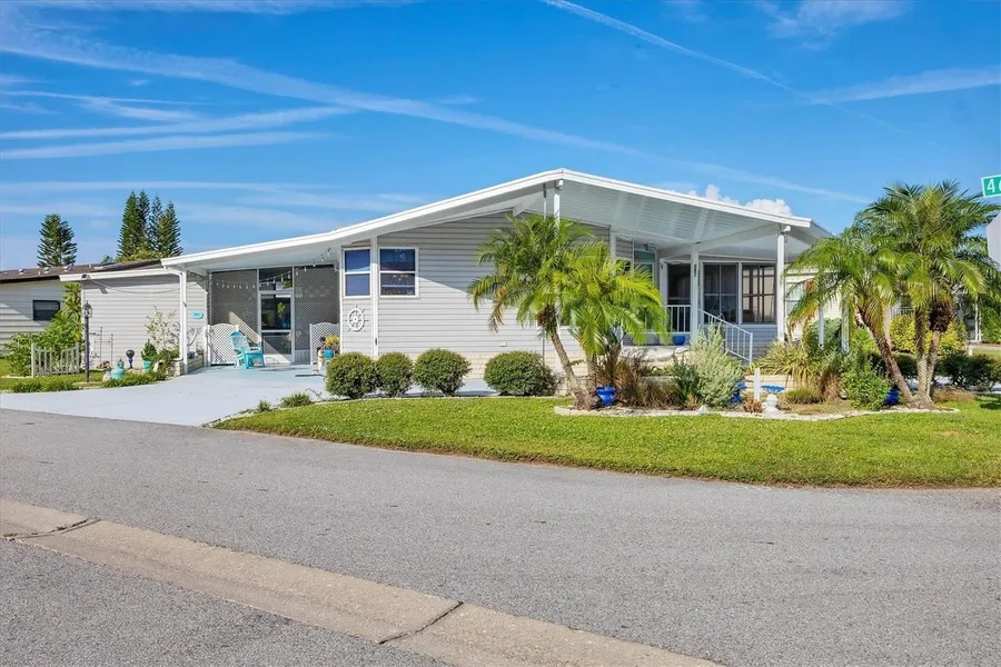 Under contract-accepting backup offers. Welcome to your own little peace of paradise. This move in ready home is waiting for you to make it your own. With 1421 heated space and 2648 SQ Ft this beautiful home is large enough to fit any ones lifestyle. It features cathedral ceilings and a circular driveway This spacious house has a open floor plan. Shadow Brook is one of the best kept secrets in Manatee county. You own the land which means NO LOT RENT. The low quarterly fee includes Water, Sewer, Cable and Internet. It is a any age pet friendly park. This beautiful house Has recently had a new AC Unit ($7,148 New Ductwork $2250 Purchased 10 year coverage for AC unit $250 and Surge protector for the AC unit $1502. These were all installed in 2025. It has had all the waterlines replaced in 2016. The premier bedroom has had the floor replaced. It has had a lifetime vapor barrier installed. 10 hurricane straps have been added to the house. 2 anchors were added to the carport beams. A new dishwasher was installed in 2024. The washer and dryer and fridge plus a new wall oven were purchased in 2016 and 17. A Roof was installed in 2012. Recent Four-point shows at least 12 years of life left on the roof. Awning and storm panels have also been installed. It has a lot of cabinets with tons of space. Shadow Brook features a beautiful heated pool and shuffle board courts. The clubhouse has a large library and a pool table. You can rent out the clubhouse for special events. Shadow Brook is located near the Sunshine Skyway Bridge and I 75. The beautiful gulf beaches of Anna Maria Island are just a short drive away. All room sizes are approximate. Please use As Is contract.