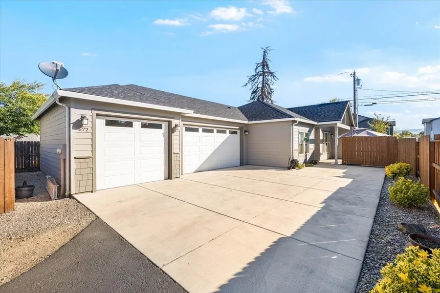 Step into comfort and style at 672 Heber Lane, where thoughtful design meets convenience in this beautifully crafted single-level home spanning 1,572 sq. ft. The inviting open split floorplan showcases rich flooring and abundant natural light, creating a warm and spacious atmosphere throughout. At the heart of the home is a chef-worthy kitchen, featuring granite countertops, soft-close cabinetry, a large center island, and an impressive walk-in pantry with ample storage -- perfect for everyday living or entertaining. The private primary suite is tucked away from the secondary bedrooms and includes a generous walk-in closet, offering a quiet and relaxing retreat. Enjoy added peace of mind with the gated entry, and bring all your toys -- there's a fully finished 720 sq. ft. three-car garage plus an additional metal carport for extra covered parking or storage.