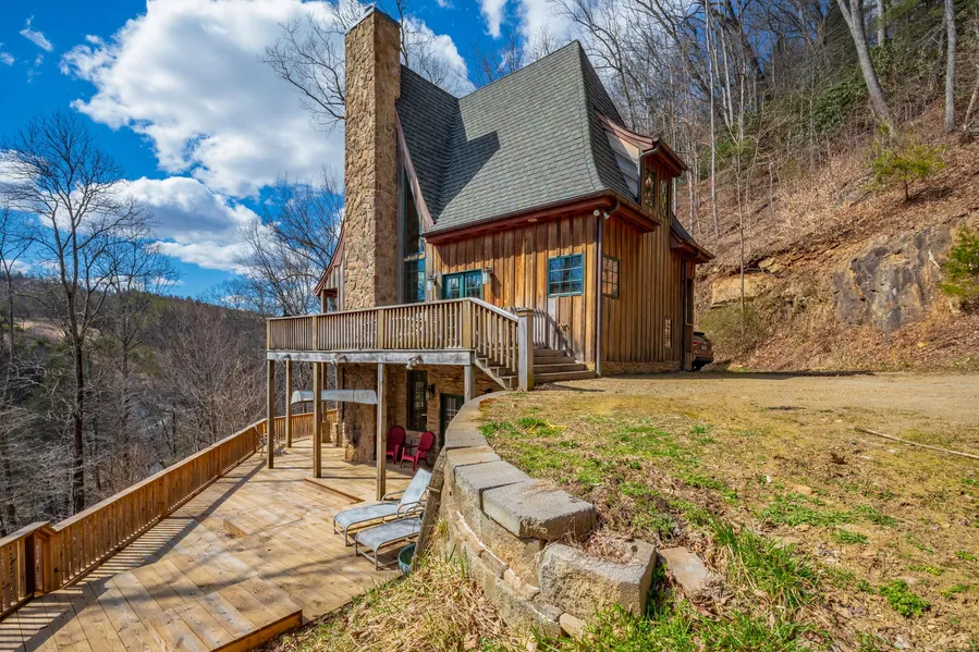This home is truly one of a kind. It is known as Peace Lodge, and when you get here, you will not be disappointed! If you have an appreciation for excellent architecture, this home is a must see! This is upscale mountain living at its finest. This Gothic cabin was constructed with exotic woods, and the highest quality materials. You will be astounded with the documented construction process for it. You are deeply secluded with a mountainous 27 acres that is vast in wildlife, beautiful wildflowers, and mountain laurels everywhere. There are steps that lead from the house down to the beautiful bold Big Reed Island Creek frontage. You can go kayaking, canoeing, trout fishing, or just sit and enjoy the water. The home is quality inside and out. The upstairs master suite has an airbath tub. The downstairs suite offers an aromatherapy steam shower as well. This 3 level retreat offers a bedroom and full bath on each level. It also has a great vacation rental history, and it's fully furnished! This cabin is practically the definition of mountain seclusion, yet is still just minutes from shopping, and the town of Hillsville. On the main level there is a fully appointed kitchen, complete with stainless steel appliances. The dining area flows into the living room, where you can cozy up next to the wood burning fireplace. Or you can step out onto the custom deck overlooking the bold flowing creek below. There are floating stairs going up to the 2nd floor, as well as down to the lower level. You will truly be taken back by all of the natural beauty here. You may even become compelled to grow a beard and wear flannel. When you step out of the vehicle at the cabin, you can feel all of your worries just melt away. So if you're looking for a mountain retreat to get away from the rat race, or are looking to have a lucrative vacation rental that basically pays for itself, you need to see this home. The driveway isn't for everyone, but then again, isn't that kind of the point?