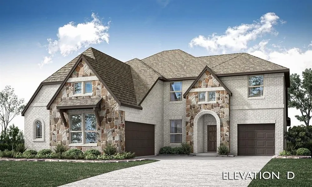 BRAND NEW, NEVER LIVED IN! The Seaberry by Bloomfield Homes is a two-story design that blends grand architectural features with smart function and elegant finishes. Set on an oversized interior lot, this home welcomes you with a stately white brick and stone façade, cedar garage doors, and an 8’ stained wood front door that opens to over 3,200 square feet of elevated living. The foyer leads to a private Study enclosed by glass French doors, ideal for working from home or flexible use. Just beyond, the open-concept layout is grounded by wood flooring from the entry to the Family Room, with upgraded tile in wet areas for a seamless and durable finish. At the heart of the home, the Family Room soars with volume and style, anchored by a tile-to-ceiling fireplace and bathed in natural light. The adjoining Deluxe Kitchen is designed to impress, featuring a 5-burner cooktop, double ovens, upgraded backsplash and tile selections, a white farm sink, and upgraded granite and quartz countertops. The oversized island offers seating for casual dining, while the nearby pantry ensures ample storage. Downstairs, Primary Suite offers a private retreat with backyard views and a spa-like ensuite. Nearby, Bedroom 5 is conveniently located just off the laundry room and next to a full bath, creating an ideal guest or multigenerational suite. Upstairs includes 3 additional bedrooms, 2 full baths, and a spacious Game Room that opens to the living area below. With 8’ interior doors throughout the first floor and elevated ceiling heights, the home feels expansive and bright in every direction. Outside, enjoy a covered patio perfect for relaxing, along with a 2-car garage and a separate, smaller single bay designed for additional storage, tools, or golf cart parking. Every inch of this Seaberry has been thoughtfully designed for comfort, luxury, and lasting value. Call or visit Bloomfield today!