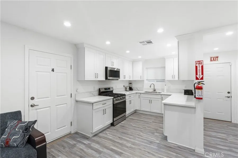 Recent upgrades include fresh interior and exterior paint, new flooring throughout, brand-new fully equipped kitchen with modern cabinetry, quartz counter tops, and stainless steal appliances, a newer HVAC system, and a newer roof — offering peace of mind and minimal capital expenses for years to come. Each bedroom has been customized with resident comfort and compliance in mind, and the property comes partially furnished to comply with assisted living requirements—making it a truly turnkey solution for care providers. The home features multiple accessibility enhancements, including wheelchair ramps throughout, grab bar in the full bath. The spacious, gated front yard boasts beautiful landscaping, while the large backyard includes alley access — perfect for ambulance entry and emergency services. Whether you're an experienced operator or looking to enter the growing senior care market, this property is a ready-to-go solution in a high-demand sector.