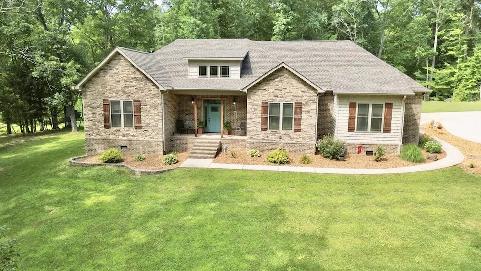 Stunning one of a kind home on 8.9 unrestricted acres and stocked pond! If you are looking for privacy then this is it! Enjoy the long winding driveway to your secluded oasis! This home was built in 2019 by one of the areas premier builders. From the moment you walk in you take notice of the knotty pine wood with a chestnut finish along with 16 foot ceilings and custom floating shelves from local wood. The home has a custom kitchen with soft close drawers to a double pantry with granite countertops. Crown molding and recessed lighting throughout. The master bedroom is a very large room with multiple walk in closets with barn doors. The master bath has a double vanity along with a man made marble shower and ceramic tile flooring. Hardwood flooring and 10 foot ceilings in the bedrooms. 36 handicap accessible doors. The front and rear porches are stamped concrete perfect for deer watching and the back overlooks the pond. Vinyl clad double hung windows throughout from win tech. The home features all amenities with city water, septic, natural gas and high speed internet. The land has good mixed timber and the ability to hunt. Not far from the Tennessee River this home could be a perfect sportsman paradise! Come check out all the details in this one before it is gone! Video available*.