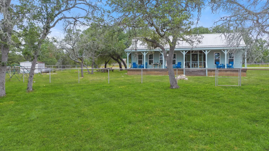 A gorgeous 1.8 acre UNRESTRICTED river front property on the Little Blanco River. With an open-style living area, a screened-in porch in the middle, and a covered porch on the back, this cottage cabin from Kanga Room Systems is stunning. In addition to two bedrooms downstairs, there are two loft rooms providing plenty of room for twin beds for kids, a galley kitchen, and two full bathrooms. Whether you are entertaining or adding on, there is plenty of usable land available for you. Located within minutes of Blanco this is a great getaway or investment opportunity. Low Taxes and No HOA