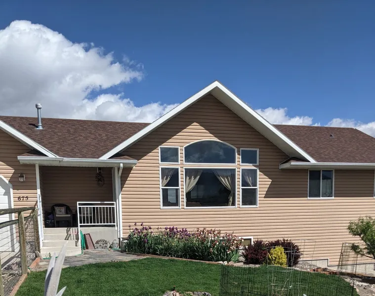 This home is like no other - this single owner custom home is ready for you! Built for the owner by Bailey homes, this 4-bedroom 3.5 bath home is move in ready! The open floor plan invites you with a gorgeous view of the Ruby Mountains through the large front windows, with valley and mountains off the back deck! A large kitchen featuring granite counters, a large island with eating bar and dining area. The main floor also hosts the large primary bedroom with plenty of closet space, an ensuite bath with jetted tub and separate shower. As you enter from the garage, the half bath and laundry area are conveniently located. The walk out basement is fully finished, and boasts two bedrooms, a jack & jill full bath, a large living/multi use area with backyard access and another full bathroom. Additional features - Oversized eaves, picture windows, large deck, two furnaces, landscaped front yard, Apple & Peach trees, and a raspberry patch and so much more! Schedule your showing today!!!! 2024 Assn Dues $81/month - Main level has A/C. Two furnaces one for each level.