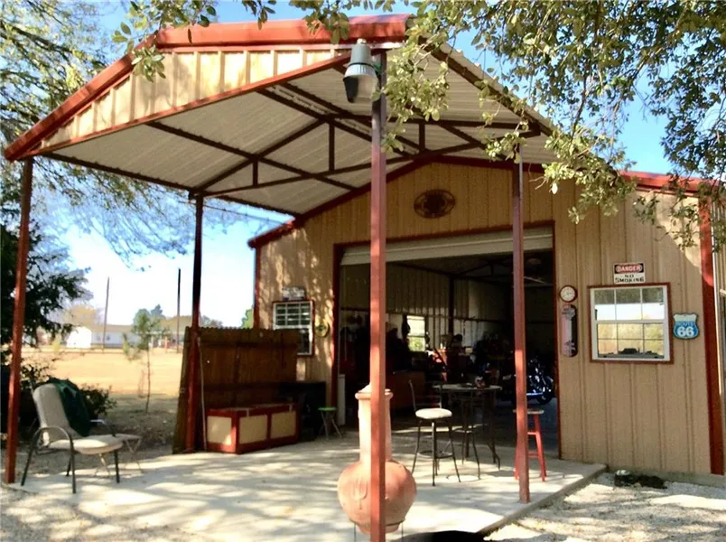 3.3+ acs. of gorgeous treed, fenced, horse property with stables, stocked pond, western styled home & multiple out buildings, includes magnificent shop with water & electric. Located in area of huge brick homes replacing mobiles. Multiple covered porches & patios. Home is 3-2 with new carpet in bedrooms & lovely view from every window, huge steel carport & nice updating. Stainless appliances in a country kitchen. Move-in ready. 12 minutes to Walmart & Rayzor Ranch shopping, restaurants, entertainment. Engineers report on foundation and anchors available. Strong suggest buyer financing to be thru Sanger Bank.