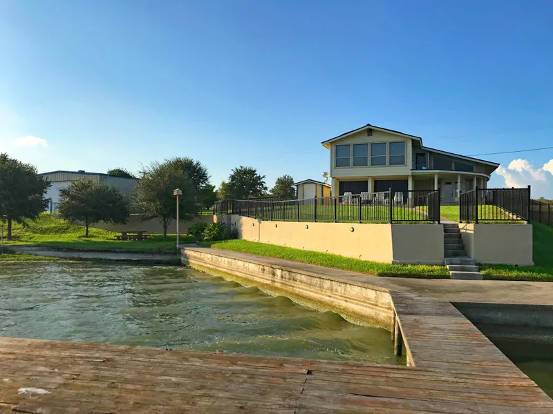 This immaculate turn-key lakefront home on three lots in Carmel Hills Estates boasts an open concept downstairs living room with wood burning fireplace and large picture windows overlooking the lake. Kitchen with Subzero refrigerator, two cooktops, and walk in pantry make entertaining family and friends a breeze. Accommodate your guests with ease in the three spacious bedrooms, three large bathrooms, and two utility rooms. Keep them cool with two A/C units and water softener. The private concrete boat ramp, two private piers, and covered private fish cleaning station with water and electricity welcome you home after a successful and exciting day on the water. Store your boat and all your gear in the expansive shop with 50'x10' shelf lined railcar/shipping container inside, and grab a drink and snack in the outdoor kitchen with stainless steel countertops. Beautiful wrought iron fencing and concrete retaining walls accent the lush carpet grass lawn with sprinkler system, oak trees and citrus trees, and concrete picnic table - all perfect for a day lounging in the sun as the family enjoys the lake.