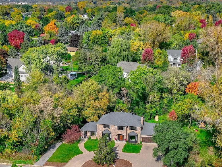 Welcome home to this fabulous two-story situated on an acre lot with a creek running through the back yard. Great Mendota Heights location near golf, restaurants, shopping, parks, and more. You ll love the spacious, open floor plan with a separate entrance for office, home business space, or mother-in-law apartment. Garage lovers' delight with 3-car attached garage on the main floor and 3-car garage on the lower level perfect for hobbies, home gym, or car storage when you add an overhead door to the side or backyard. Privacy abounds behind the home with a nice mixture of grass, woods, and creek, and a perfect spot for a firepit to host guests for a fall outdoor fire. Home features updates throughout with all new natural maple flooring on the main floor, updated baths, new Pella windows throughout, new Pella sliding doors, and more. Updated kitchen includes new quartz counters, new appliances, informal dining area, and a view of the new maintenance-free deck. Main floor has both formal and informal areas including a main floor family room and living room with brick surround wood-burning fireplace, formal dining room, hobby space, and laundry room. Head upstairs to find 4 bedrooms on one level, including a primary suite, all with hardwood flooring. Finished lower level walkout is the perfect 'hang out' space with family room, recreation area, guest bedroom and 3 4 bath, and play space for future fun! Paver horseshoe drive is perfect for welcoming you and your guests. Additional updates include new James Hardie siding, fascia & gutters, new washer & dryer, finished lower level, new landscaping and boulder wall, new carpet, lighting, front door, and more. This home has been meticulously maintained and is ready to move in and enjoy!