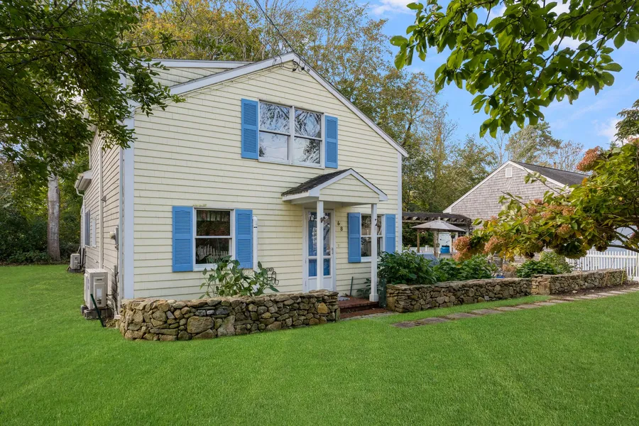 Absolutely enchanting is this single-family home and guest house set on just under a 1/2 acre in the beachfront community of Bayview. The 2 cottages share an arbored walkway and stone patio between them and both dwellings are surrounded by a lush array of trees, stonewalls, and open lawn space, all of which contribute to the overall curb appeal of this property. The main home features a kitchen and keeping room with sliders leading to the shared stone patio. A living room with vaulted ceilings, a half bath, and a laundry closet complete the first floor. Upstairs is the primary bedroom, full bath, and large storage room. The guest house which is attached to a 2 bay garage offers an inviting front porch, open living/kitchen/dining area, den, bedroom, and full bath with laundry. Community residents enjoy two sandy beaches, a boating dock, a floating swimming platform, onshore storage for dinghies/kayaks, and a community lawn from which to admire the coastal view.