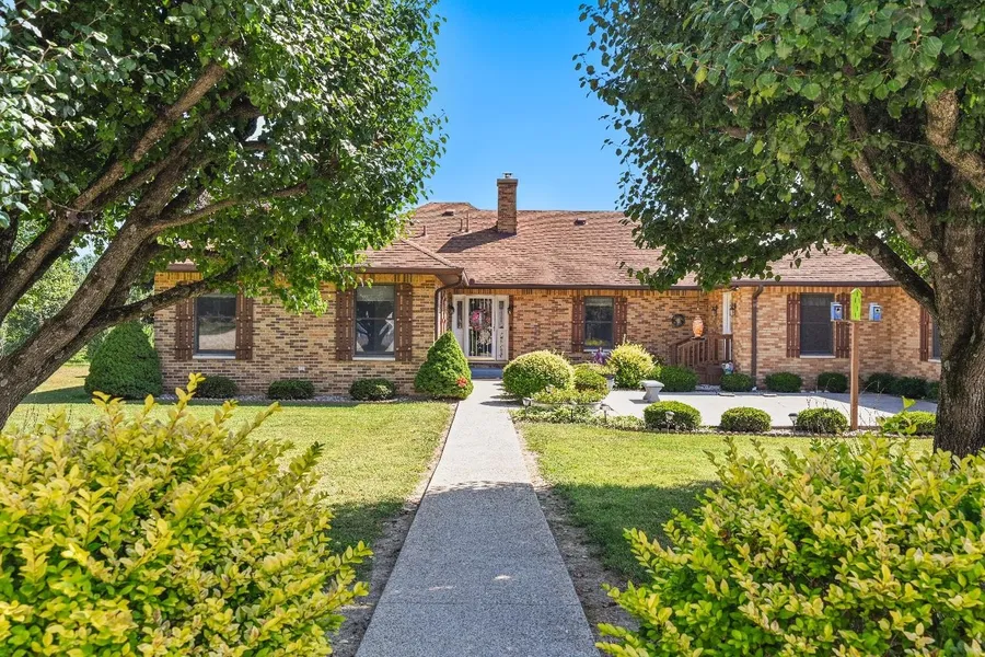 Motivated Sellers! Custom Built Brick Ranch that sits on over 35 acres w/ some of that being woods. This is a dream home for anyone looking for a blend of luxury, privacy, and space to enjoy country living. This ranch offers 3 bedrooms 3 1/2 Baths. Two master en-suites that has been remodeled w/in 5 years. The kitchen is open & has an island which is a fantastic space for cooking & entertaining, w/ the added bonus of the appliances being replaced in 2020. Hardwood flooring is in LR, DR, bedrooms and hallways. Geothermal was installed in 2023 along with a 2nd Hot Water Heater. You will find endless possibilities in the basement w/ the option for an in-law suite or multi-generational living, the basement offers additional bedroom, a family room, kit, bath & a room that could be used as a gun safe with a proper door. So many outdoor options, enjoy your mornings or evenings on the covered porch off the kitchen, stocked pond that's under 2 acres. Also theres 40x60 pole barn w/ a 1/2 bath.