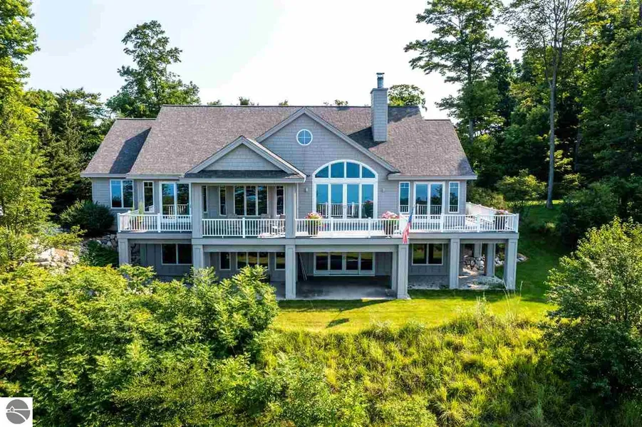 View Glen Lake in its entirety! Just around the corner from Sleeping Bear Dunes National Park, Historic Leland, and award winning wineries. Meandering roads and a tree lined driveway lead to this idyllic Glen Arbor estate. This lovingly and thoughtfully designed home in Leelanau County has given joy and relaxation to its owners and their guests and is ready for you and yours. The kitchen is beautifully appointed with cherry cabinetry, granite counters, Dacor range, Viking oven, generous pantry, and Sub-Zero refrigerator. White Oak floors, riff and quartered in Northern Michigan throughout the main level. Main floor primary suite opens to the deck, also features a lovely double sink vanity, marble floors, low threshold shower, soaking tub, and walk-in closet. The walkout lower level has 2 bedrooms, 2 full baths, a huge family room with a 2nd stone fireplace, and ample storage area. Seller purchased neighboring lot to increase the size and privacy of location. 2 AC units. There are just too many treats to list here so be sure to view the virtual tour to discover everything this gem has to offer!