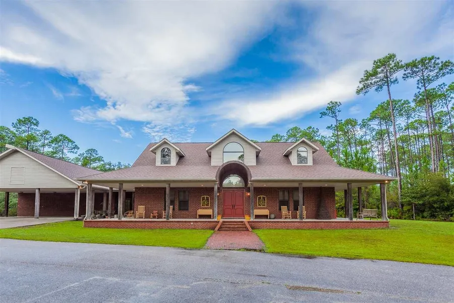 This house officially has three bedrooms but the two upstairs bedrooms are tremendous, they each have a full bath w/Whirlpool tubs, and both could very easily be split to make a total of four. If the upstairs bedrooms were split to make four, each of the four bedrooms would measure approx. 17' x 13'. Making the home have a total of five large bedrooms. This large, very well built, custom home, is a retreat. It speaks fellowship and relaxed gatherings. The combination of the large wrap around porch, the large kitchen/great room, the almost 900 sf game room, and the covered breezeway between the kitchen and the game room, all enable casual entertaining of a mass number of people, all on the same level. The kitchen, equipped with a Viking Commercial Range and a double drawer dishwasher enhance the ability to entertain. The almost 2 acre yard, with a very cool Zip line, enables fun for all, giving room for all kinds of outdoor activities. The Master is downstairs, and upstairs you have two giant bedroom areas. Both having a full bath w/whirlpool tub and room for a family of five to sleep comfortably. The house is stick framed with plenty of storage. The interior doors are handmade of Oak & the front door Mahogany. The archway over the entry is copper & the Oven Vent Hood over the range is custom made of copper. Engineering & craftsmanship abounds and it's all been maintained to perfection. This home was planned and engineered by the same structural engineer that created Portofino on Pensacola Beach! It's a very special home!!
