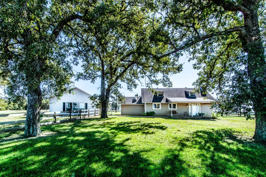Appealing country ranch with original 3/2 home PLUS separate 2/1 cottage both nestled in fenced shady yard on higher elevation near middle of 111.5 cattle ranch. Apx. one acre stocked lake, 2,400 sq.ft. metal barn/concrete floor with 2 tall roll up doors on either end, an older barn/loafing shed and well house. Entire property is fenced with cross fences for 5 acre hay meadow and around houses. Newer guest cottage great for overflow guests, office, or studio has tall ceilings, large windows, beautiful bath, laminate flooring, entry space with stain glass window accent, large covered front porch and concrete walkway to main house. Enjoy lake and land views from swing on covered front porch of main house. Desirable almost square property shape with apx. 2,100 ' on all 4 sides including frontage on paved farm to market road. Country living within a half hour of Bryan/College Station and between Normangee and Madisonville