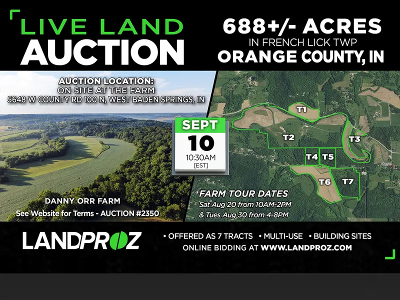 Please contact LandProz Broker Eric Richards at 317-557-1376 or Auctioneer Brian Owens at 812-528-7021 for more information about this property.