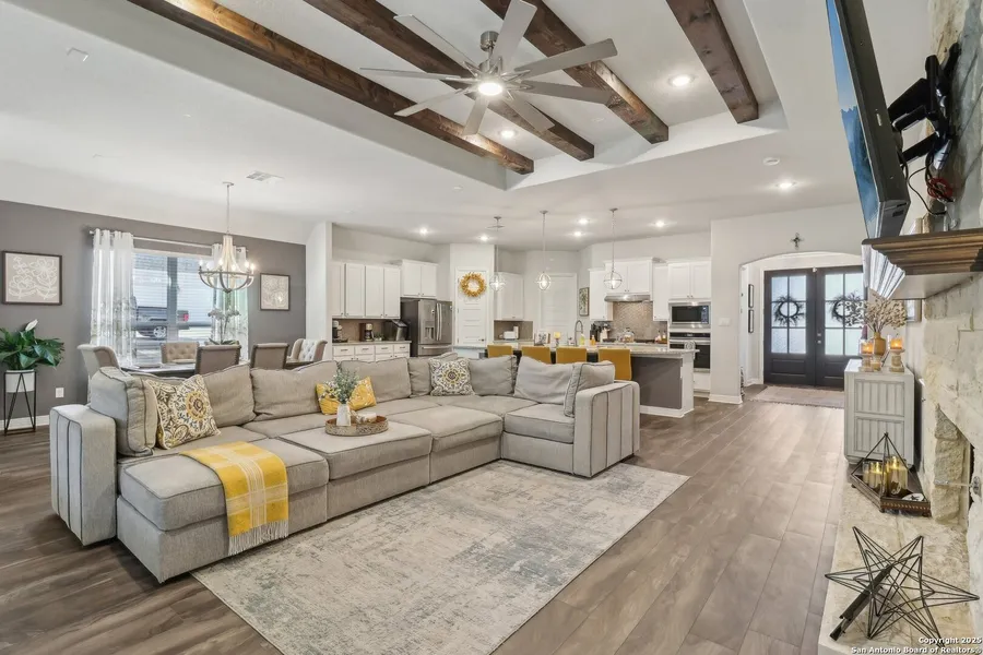PRICED WELL BELOW APPRAISED VALUE! SELLER FINANCE POSSIBLE! Appraisal available upon request. Estimated value of upgrades not typically included with a new build, approximately $35,000 (including fencing, lighting, appliances, and other enhancements) ** Home comes with a home warranty up to $600.00** Welcome to 689 Lilly Bluff, an exquisite 4-bedroom, 3-bath home that epitomizes modern luxury in the highly coveted Potranco Ranch neighborhood. Constructed in 2022, this residence exudes a fresh, pristine allure, inviting you to experience sophisticated living at its finest. The striking exterior is enhanced by expansive grounds, featuring elegant accents and customizable trim lighting that creates an enchanting atmosphere, perfect for evening gatherings. Step into the backyard, an entertainer's dream, complete with a cozy fire-pit area and a new cedar fence adorned with custom steel-framed gates, providing a private retreat ideal for hosting or unwinding. Inside, elegance meets functionality with an open-concept design that radiates warmth and style. The gourmet kitchen boasts top-tier amenities and tasteful finishes, seamlessly connecting to the airy living space, which is accentuated by stunning beams and floating shelves that provide a contemporary yet inviting ambiance. Indulge in the luxurious master bath, complete with soft-close cabinets and exquisite fixtures that elevate your daily routine. The thoughtfully designed laundry room features a charming barn door, chic tile backsplash, ample storage, and dual butcher block counters, perfectly blending practicality with style. The expansive 3-car garage offers generous space and includes ceiling storage units and a dedicated workbench, catering to all your organizational needs. Additional highlights include modern lighting throughout, a water softener and filtration system, elegant window treatments, and tasteful accent paint on the kitchen island and niches. This immaculate, move-in-ready home perfectly balances luxury and practicality, making it an ideal sanctuary for discerning buyers. Don't miss the opportunity to experience this exceptional residence-schedule your private showing today!