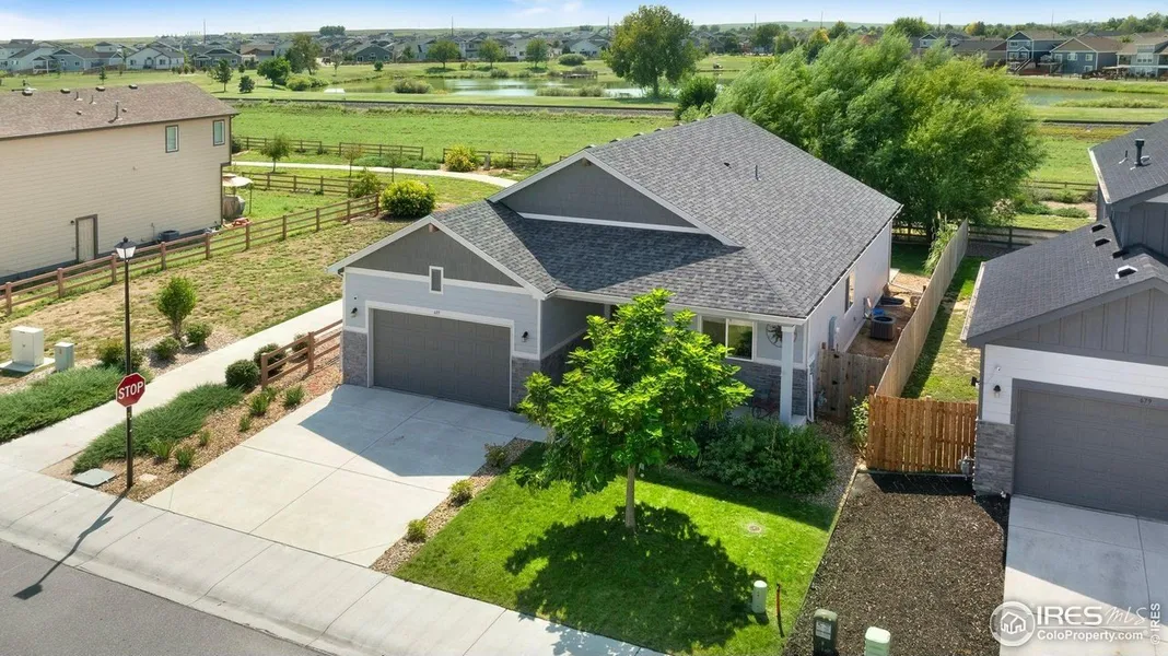 Don't miss this updated Milliken home that's move-in ready, backs to open space and trails and full of charm. From the welcoming front porch, step inside to soaring ceilings, big windows, and plenty of natural light. The open layout makes it easy to gather, with a spacious living room flowing right into the kitchen where you'll find a center island, quartz counters, new appliances, and an updated faucet. The finished basement adds even more room for a rec space, office, or guests. Outside, enjoy a private yard that backs to a walking path, complete with a large patio for entertaining, a rose garden, and a separate garden area. In the past year, the home has seen a new roof, fresh paint and wallpaper, new vinyl flooring, plus updated ceiling fans, light fixtures, and more. With small-town living, quick access to I-25, and nearby city conveniences, this one is ready to welcome you home.