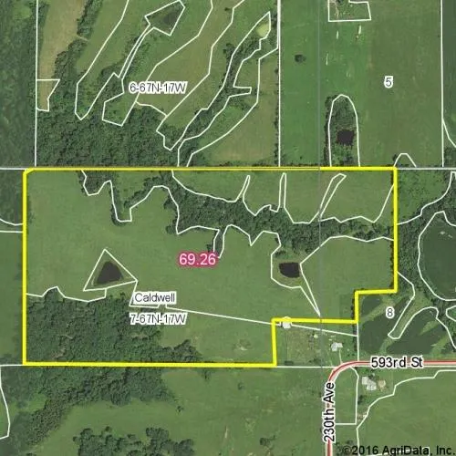 The farm consists of mostly open ground with 2 ponds, waters behind the ponds, creek, and small patch of timber. Farm would be a good piece of pasture ground.