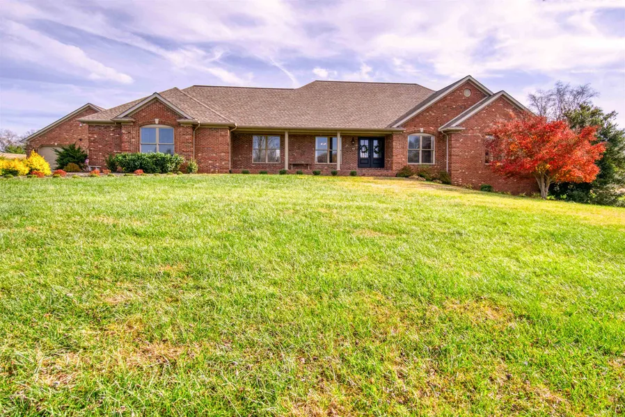 Go ahead make an offer on this gorgeous one-owner home. This brick ranch checks off all the boxes with everything you need on main level from 3 bedrooms, 2 baths, laundry room, living area with formal dining and eat in kitchen with bar. This home boasts a beautiful vaulted ceiling living room with lots of natural light coming in from the double doors. A bonus is the loft overlooking the living room with a great space for an open office and a bonus room/5th bedroom. The walk-out basement has another living room, kitchenette, bathroom, bedroom and storage area with a gun cabinet. Owner is offering a Zero turn John Deere Lawnmower and hot tub to stay with the home and 4 acres. Every man's dream is to have a 3 car attached garage and 4 car detached garage with an office space and a drive-thru bay, right??? Don't let this one pass you by. Extras features are: wainscoting, trey ceilings, gas fireplace, Natural cherry cabinets, Quartz countertops, stainless steel appliances, security system, walk-in closets, garden tub and shower in owner's suite, covered back patio and gorgeous views!!
