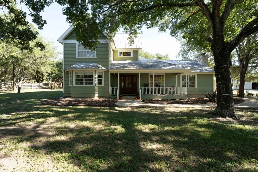 Enjoy a private and peaceful country life in this wonderful 4/3 home. The 10 acre property is nestled in a grove of too many Live Oak trees to count. Located minutes from La Grange where you'll find shopping and restaurants and 12 miles to Round Top for great food, music and fun. The home was recently painted throughout the interior. Saltillo tile covers the floors of the first floor with manufactured wooden floors upstairs. An added bonus is the addition of solar panels that cover 80-85% of energy costs in this all electric home. The panels sit on the roof of the 40 x 60 metal barn which also has a 16 x 60 overhang for additional storage. The property is perimeter and crossed fenced with goat/hog wire. An agricultural exemption is in place. Don't miss out on this one!