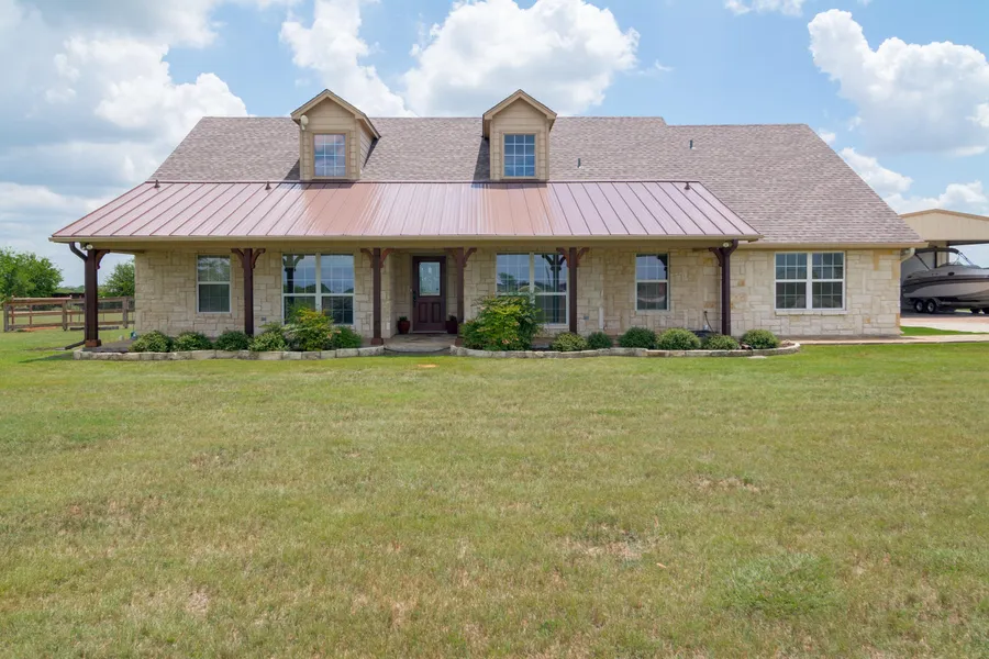 Immaculately maintained Austin stone and brick home on 5 acres with flexible floor plan. The interior features beautiful stained concrete floors, silestone countertops in the kit and bathrooms, stainless steel appliances, separate walk in closets in master, 12' ceilings in the living room with floor plugs and can lights. Exterior features huge flagstone back patio with pergola,. New roof on shop and house May of 16 and new AC unit May of 16