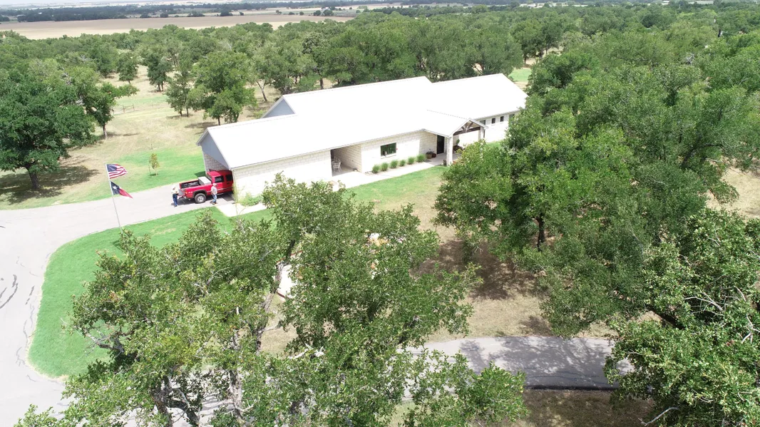 Beautiful Rock Home on 20 acres of tree covered and coastal grass. Home is Beautiful and spacious with large Rooms and high ceilings Large bathrooms and large county kitchen. Covered porches front and back. Foam insulation for low utility bills. Large workshop with area walled off for a guest house or rental apartment with Full bath and window A/C unit. Two large storage barns and a barn for the animals. Stock Pond with lot of fish. GATE CODE WITH AGENT.