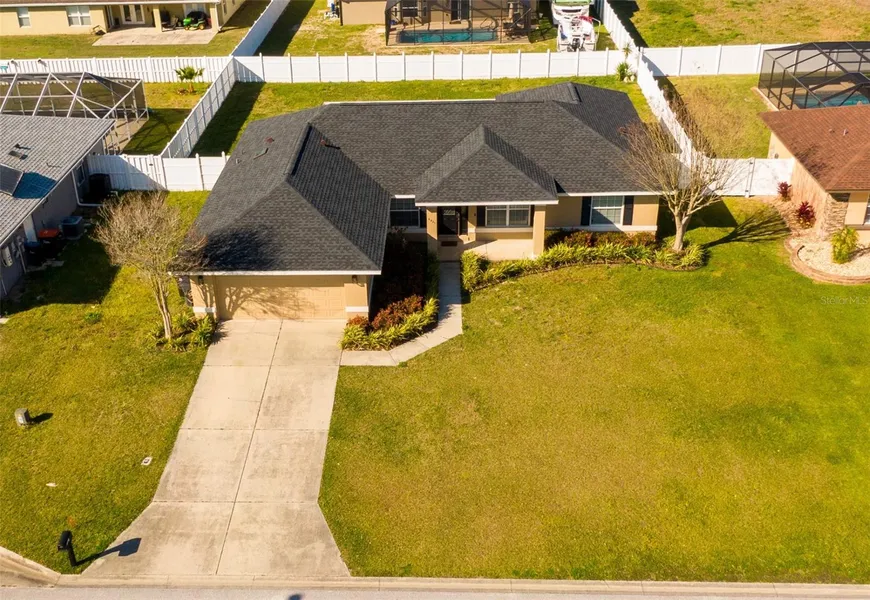Welcome to Diamond Ridge of Belleview, FL; convenient to shopping and restaurants, where you will find this charming 4-bedroom, 2-bathroom home. Split floor plan with Tray Ceiling and Plant Shelves. Open floor plan with tile flooring. Kitchen has small eat-in area and pass-through to living room and dining room. Large Master bedroom with walk-in closet and Master Bath. From the living room you open French Doors to a large screened-in patio plus an open patio for cook outs. Large yard with PVC fence. One bedroom features a murphy bed with shelving. ROOF REPLACED 2022. TWO YEAR HOME WARRANTY!!!!