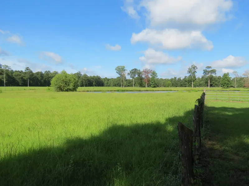 Secluded in the Big Thicket on well maintained road is 20 acres that is fenced and crossed fenced. The land has been planted in improved grasses with large pond for fishing and livestock. Several home sites with large pecan trees. House is approximately 60% complete on finishing it's updating (As per Seller/Builder). Property has deed restrictions. No Mobile Homes.