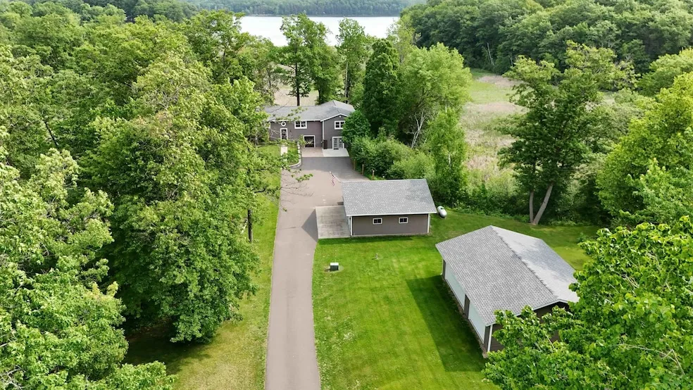 Tucked away on 33.2 acres of pristine natural beauty, this private retreat offers the ultimate inseclusion, space, and serenity- just minutes from Luck, Wisconsin! How fortunate for you! With panoramic views of Pine Lake and no noise or light pollution, it s a peaceful haven where you can truly unwind and connect with nature. Wildlife lovers will be thrilled by regular sightings of deer, eagles, otters, and turkeys right outside their windows. This spacious 4-bedroom, 3-bathroom home is perfectly designed for both everyday comfort and unforgettable entertaining. The layout flows effortlessly, with two fireplaces adding warmth and charm, and a beautifully remodeled kitchen at the heart of the home. Fresh paint and new flooring in 2025 make it feel fresh and move-in ready. The lower-level living room has served as a successful home-based business, complete with its own kitchenette and bathroom ideal for guests, workspace, or a private suite. For the hobbyist or collector, two garages (one heated 3-car and one additional 3-car) provide abundant storage and flexibility. Whether you're hosting a crowd or enjoying the quiet beauty of the landscape, this rare property delivers privacy, space, and comfort in equal measure. A true escape that s just waiting to welcome you home.