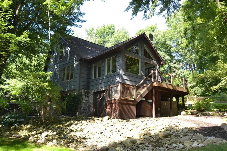 Serene Privacy! As you enter 696 Curran road you soon see that this is a special property... Mature Maple and Pine trees abound! The primary home is nestled on a hillside with a beautiful paver stone entry and soothing waterfall. A rustic cottage ideal as an Air B&B, rental or artists studio is off in the woods. There are two fenced pastures and a 24x40 heated pole barn. A stunning Caves kitchen greets you as you enter the home with its open floor plan. The Sunroom offers ample space with huge windows and entry to the curved deck. The 1st Floor Primary Suite offers ample closets and a spacious bath. The FF Laundry is a few steps away! Impressive hard scape including waterfall and circular fire pit for relaxing evenings. Delayed negotiations until Tuesday August 15 @ 7pm.