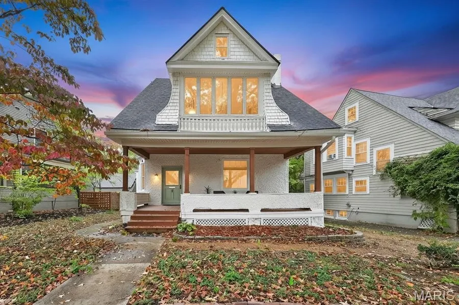 Discover your stylish new home in the heart of historic University Heights, part of vibrant University City. This beautifully renovated 3-bedroom, 2.5-bath residence perfectly blends classic details with modern conveniences. The deep covered front porch welcomes you into a generous foyer and impressive living room featuring hardwood floors, beamed ceilings, a striking fireplace, and wide window casings that frame abundant natural light. The open dining room and kitchen are ideal for entertaining, with granite countertops, a butcher block center island, and sleek stainless-steel appliances. A powder room and first-floor laundry complete the main level. Upstairs, the spacious primary suite offers a luxurious bath with a large tiled shower, dual sinks, and brushed brass hardware, along with an inviting sitting room overlooking the idyllic street. Two additional bedrooms, a stylish full bath, and a private balcony provide space and comfort. Outdoor living continues with a screened-in back porch and spacious backyard ready for pets or play. The third-floor walk-up attic offers tremendous potential for an additional family room, playroom, or fourth bedroom with ensuite. Combining modern finishes with timeless architectural charm—and just minutes from Forest Park, Clayton, and Wash U—this home is a true University Heights gem.