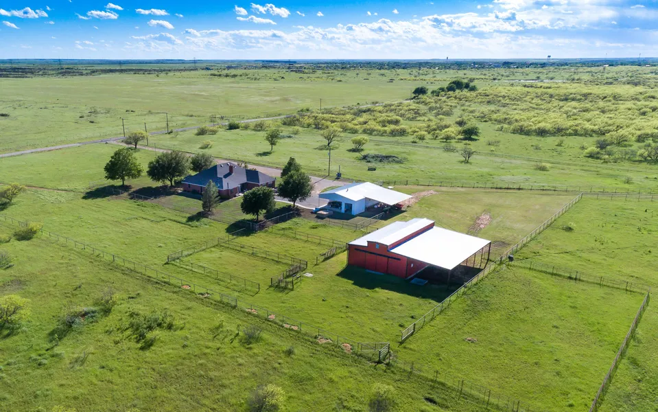 Main House ::: This custom one-story home is approximately 2,520 air-conditioned square feet, per Archer County tax records, and is well maintained and in excellent condition. Designed for year-round living, it features a gated entrance and hard-packed road leading up to the home and utility barn /garage for easy covered parking and access.