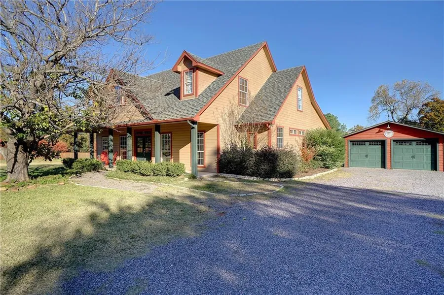 Beautiful custom built home on .688 acre lot with wide inviting front porch and expansive covered back porch great for entertaining! Open living with walls of windows overlooking park like yard! Living room features wood burning stove, white rock and shiplap fireplace surround. Office has beautiful reclaimed shiplap flooring and 8 ft vintage double doors! Master bedroom has a sitting room and sliding reclaimed barn door to master bath which has just been updated with hand painted floors. Two large bedrooms upstairs each with full bathrooms and either could be a secondary master or guest suite. Upstairs living features extra storage in a custom window seat and additional room for a game table.