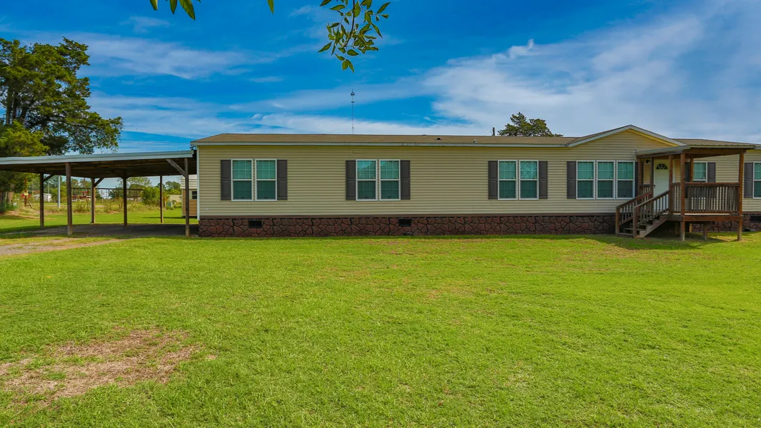 4 BEDROOM MOBILE HOME LOCATED ON OVER AN ACRE IN DEBERRY IS READY FOR NEW OWNERS! HOUSE IS TURN KEY AND IN TIP TOP SHAPE CONTAINING 4 BEDROOMS, 3 BATHROOMS, TWO LIVING AREAS, LOADS OF COUNTER AND CABINET SPACE, AN OFFICE AREA, A FRONT PORCH, A BACK PORCH, AND SIDE STEPS ALONG WITH A 3 CAR ATTACHED CARPORT. ELYSIAN FIELDS SCHOOL DISTRICT!