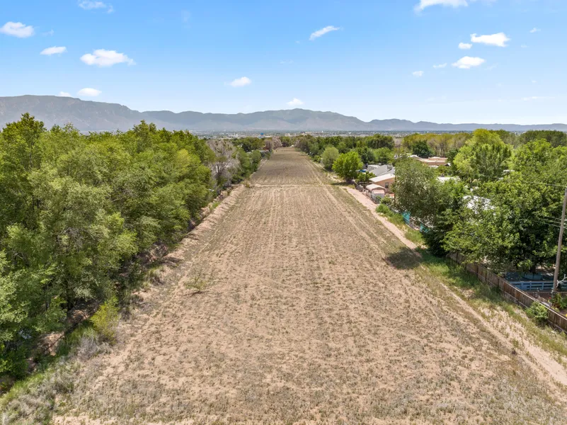 Per Village of Los Ranchos: Dual zoning: C-1 abutting 4th street, R-2 for the rest of the property. In the R-2 zone, minimum lot sizes are .5 acres and for C-1 can be subdivided into half acre lots. 7 acres of laser graded Los Ranchos land right off 4th St! Laser grading and ditches redug recently cuts watering time down from 3.5 days to 12 hours. Perfect for any type of agriculture or to redevelop into high end gated housing community. There are original adobe structures on the property that convey including an AS IS 1100 ft home. The views of the Sandia Mountains is spectacular from all acres. Has 3 inactive wells and connected to city water.