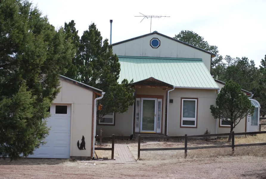 Very nice and well maintained home for a family or retirees only 2.5 miles from Datil. Horse property with two very nice 12'x12' stalls inside a 24'x36' metal barn with plenty of hay storage space. There is 24'x24' 2-car garage with automatic roll-up doors, a saddle and equipment metal shed in size 10'x16', a 24'x32' vegetable garden with a frost-free water tap, as well as an excellent well which supplies water to the house, garden and barn. You enter the house into the kitchen/dining and living area. Kitchen counters are very nice laminate, lots of space in the country-style kitchen which accesses a south-facing 12'x16' sunroom. The living room features high ceilings with fan, a newer propane stove (the only source for heat), a large staircase to upstairs loft and 2nd bedroom with full bath.