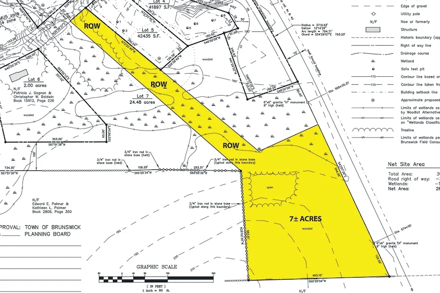 7 acres of Brunswick land in Subdivision with ability to divide with a minimum lot size of .46 acres (20,000SF). Access point to land via Greystone Lane and close to I295. 10 minutes from Downtown Freeport (LL Bean) and more.