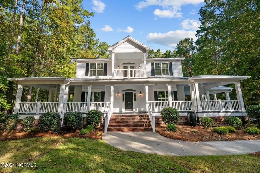 Welcome to timeless elegance nestled in the picturesque Gables Run Equestrian community of New Bern! As you approach the property, you'll be greeted by the sight of wrap-around porches that invite you to ''Come sit on the porch '' and enjoy the tranquil surroundings. This custom-built home, lovingly maintained by its original owners, offers a perfect blend of colonial farmhouse architecture and modern conveniences The home's systems have been carefully maintained and developed for both comfort and efficiency. The downstairs has a natural gas furnace for faster heat-up times, ensuring you stay cozy during cooler months and a natural gas generator provides peace of mind during power outages. Step inside, and you'll be immediately struck by the attention to detail, extensive millwork, and thoughtful design that permeates every corner of this 5-bedroom, 4.5-bathroom residence. The home boasts 9-foot ceilings throughout, arched doorways, and 4,309 total heated square feet. Creating an airy and spacious atmosphere that compliments the Brazilian cherry hardwood floors underfoot. The heart of the home is undoubtedly the spacious farmhouse kitchen. Here, you'll find a double oven for all your baking needs, along with ample counter space for meal preparation. A charming coffee hutch with a built-in wine fridge adds a touch of sophistication, while the walk-in pantry ensures you'll never run out of storage space. Adjacent to the kitchen, the family room beckons. A natural gas fireplace with reclaimed barn wood surrounding , crafted from the owner's family barn, serves as a focal point. This thoughtful touch brings a piece of history into the home. Outside of family room is the powder room which even showcases an antique washstand console with a marble bowl. This house sits on a large, wooded 3.45 acre lot that ensures privacy! With 2 car garage, attached workshop and porte-cochere! Do not miss this well loved home in beautiful Gables Run!