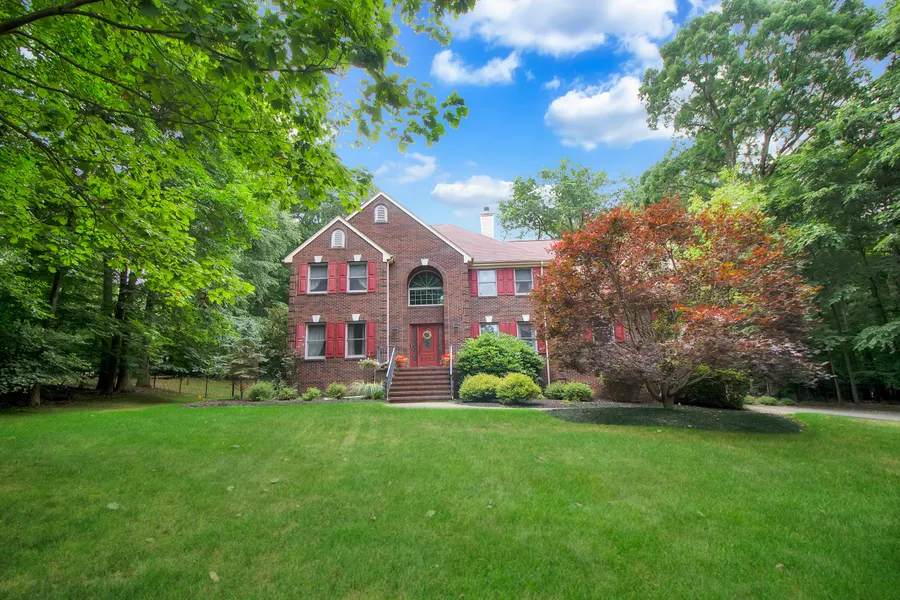 Nestled on America's quintessential tree-lined street, this spacious Colonial-style home offers the epitome of suburban luxury living. As you step through the door, a grand 2-story entry welcomes you with gleaming hardwood floors and a Palladium Window flooding the space with natural light. The open floor plan, featuring recently finished hardwood floors, is perfect for entertaining. The sun-drenched living room transitions seamlessly into the cozy family room, complete with a wood-burning fireplace and French doors. The updated Eat-In Kitchen is a culinary haven with newer stainless steel appliances, granite countertops, and access to a sprawling deck overlooking the professionally landscaped backyard oasis, complete with a custom pool and spa. Also on the first floor, you'll find a formal Dining Room, two powder rooms, a convenient laundry room, and garage access. Upstairs, the primary bedroom awaits with a fireplace, sitting area, and spa-like updated en -suite bath featuring a soaking tub and dual walk-in closets. Three additional generously sized bedrooms and a full bath complete the upper level. The fully finished basement, recently updated, offers versatility with two offices/dens, a recreational room, and ample storage space. Impeccably maintained and thoughtfully curated for modern living, this residence promises unparalleled comfort and sophistication. New septic JUST installed March 2024.