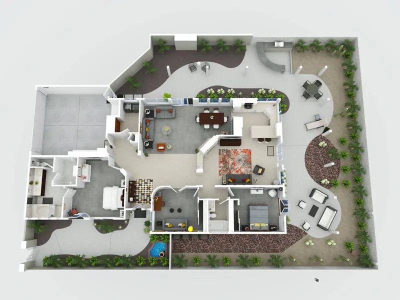 Discover tranquility in this immaculately maintained single-story home, nestled within a gated community that's close to everything yet peacefully tucked away. As you step inside, prepare to be impressed by soaring 10-foot ceilings and a wall of windows that flood the space with natural light. The open-concept living and dining areas create an ideal setting for entertaining, while a two-sided gas fireplace adds a cozy touch for those cool desert evenings. This 2-bedroom, 2-bathroom residence boasts a thoughtful split-bedroom design, ensuring privacy for the primary suite. An additional office with a pull-out bed offers versatility for guests or remote work. Dual HVAC systems provide year-round comfort, and a gated front patio with a charming water feature welcomes you home. Step outside to your private oasis, featuring a wrap-around Alumawood covered patio, a serene water feature, and a built-in outdoor bar and BBQ area perfect for al fresco dining. The community amenities are equally impressive, with two sparkling pools, three hot tubs, and beautifully landscaped grounds with walking paths. Located near one of the community pools yet set back for privacy, this home offers the best of both worlds. The neighborhood's hidden location shields you from the wind while keeping you close to all the attractions Rancho Mirage has to offer. For dog lovers, the nearby Civic Center Dog Park is just a short drive away. Available for seasonal rentals