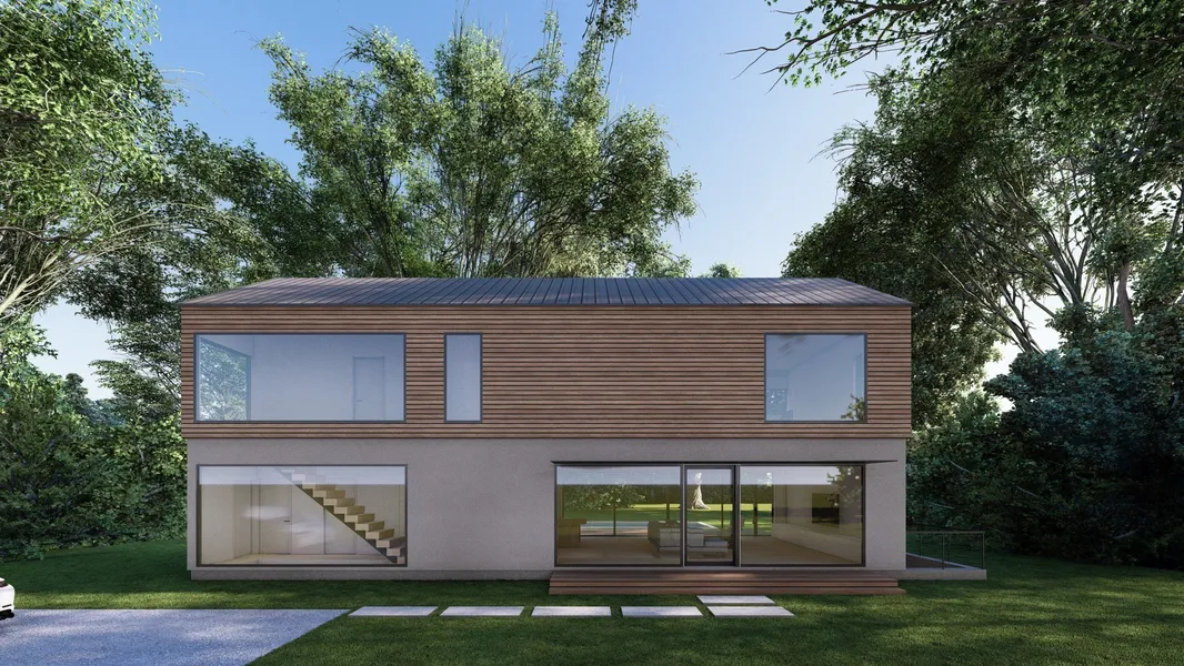 This newly custom-designed 2,514 SF home offers 4 bedrooms and 4 baths, featuring a separate one-of-a-kind oversized barn with 18-foot ceilings. A striking 8-foot by 4-foot pivot door opens to an expansive open-concept floor plan with 10-foot ceilings throughout. The modern kitchen is equipped with Subzero appliances and can be tailored with the buyer's choice of materials and finishes. Throughout the home, wide-plank engineered oak flooring and sleek, minimalistic wood trim create a sophisticated atmosphere. The upper-level primary bedroom and bath are generously sized, complemented by three additional guest bedrooms, each with its own en suite bath. The upper level also includes a laundry room and a versatile office/den, featuring floor-to-ceiling windows that flood the space with natural light. The outdoor space boasts a heated Gunite pool with marble coping and a rear IPE wood deck. The lower level, with its 10-foot ceilings and walkout area, offers an additional 900 square feet of space, ready to be customized to fit the new owner's needs. Large 8-foot glass sliders bring even more light and a seamless connection to the outdoors.