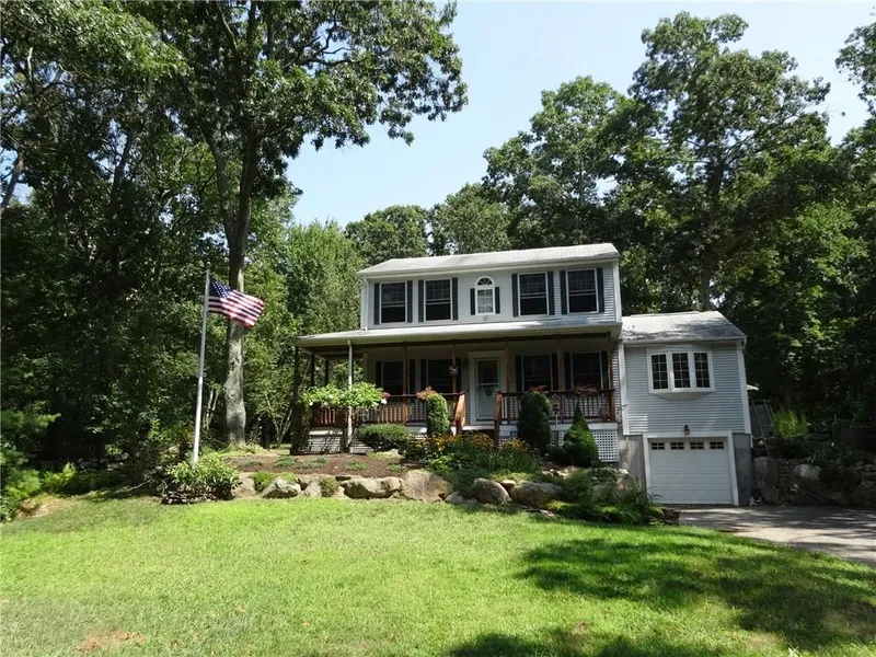 Very nice 3 Bed, 2 Bath, 1816sqft vinyl sided Colonial on a 1+ acre lot cul de sac in Camelot Estates. Features include hardwoods on the first floor, granite kitchen with island, stainless appliances, gas cooking, 2 family rooms with wood stoves in each to keep you warm in the winter. The second floor features the master bedroom with a walk in closet, 2 more bedrooms and a tiled full bath. There are sliders that open to a large rear deck with a stone fire pit and a 6 person hot tub adjacent to a cool Tiki Hut with Bar and backround music to entertain family and friend gatherings. The spacious backyard offers a good size shed, green house and a natural stone patio. Relax on your Farmers porch overlooking the large front yard and long driveway entrance. The lower level includes a laundry, plenty of built in storage shelves and a walk out to the garage. The home is set back from the road with plenty of off street parking. If you are searching for a spacious home in a great rural setting with a unique and amazing backyard to enjoy, this property is a must see!