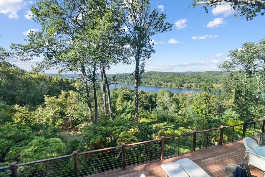 View, views & more views of the CT River abound from this completely renovated & modernized villa situated high in the hills of the majestic lower CT River Valley! Imagine walking-out onto your wrap-around 1200 sqft Mahogany deck while panoramic views of the river open-up in front of you. To the north, the Chester marina's & Marker 37, to the east across the river are the hills of Lyme, to the south Essex. It's truly just stunning! The home has been morphed from a modest dwelling with great views to a stately villa that grasps the concept of modern living while taking-in the views from virtually every living space. Smartly renovated just a few years ago, improvements include a kitchen facelift with white washed cabinets & granite, added study/library that walks out to the Mahogany deck via sliders, a master bedroom suite that grasps the views through large bay windows & offers a magnificent master bath with aerated soaking tub, glassed & tiled steam shower, heated towel rack, dual sink granite topped vanity, heated floor & water closet, new oak floors throughout, new roof & vinyl impressions siding, new driveway, Mahogany wrap-around deck, Kohler full house generator, Veissmann boiler & much, much more! Just minutes to Deep River & Essex Villages with all their culture, shopping & restaurants as well as the CT Shoreline. Equidistant between New York & Boston (about two hours). Time to make your dream a reality! The adjacent 1.58 acre lot is available as well.