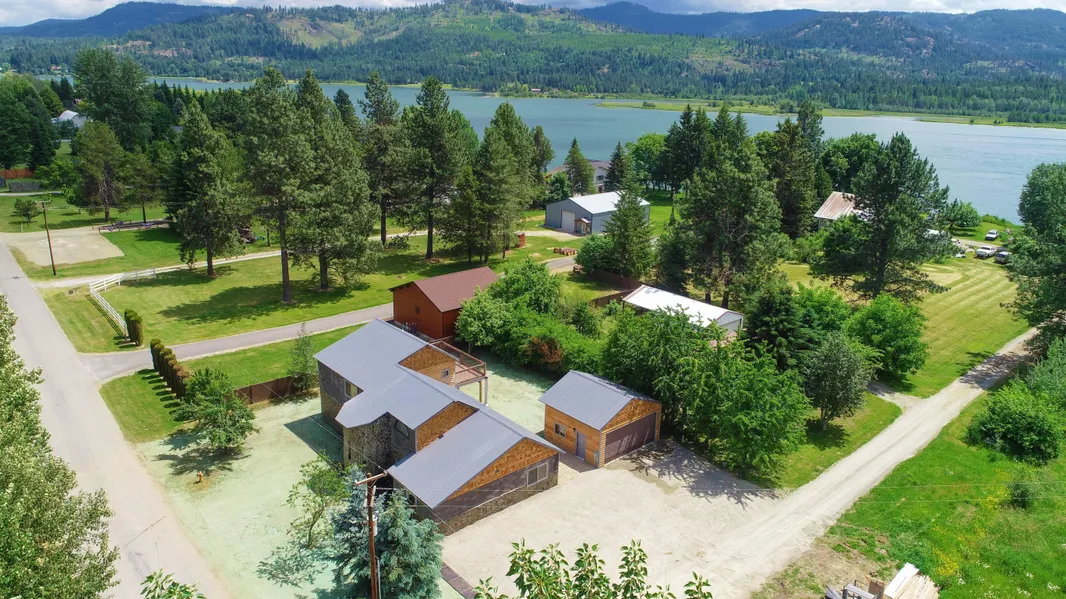 Community Beach access to Pend Oreille River with a boat launch, wonderful water recreation, ideal waterfowl hunting just one block away. This breathtaking, one-of-a-kind, contemporary style home features a very open floor concept with a stunning a large gourmet kitchen and stainless Bluetooth appliances, cement countertops, a large centered island, a custom-built round breakfast nook, plus a walk-in pantry with a buffet bar. The great room features vaulted tongue-and-groove ceilings, large windows and custom French door that offer natural light and a floor to ceiling wood burning fireplace, and main floor primary suite. This property is just minutes away from Sandpoint, Priest River, Schweitzer Mountain and miles of mountain trails.