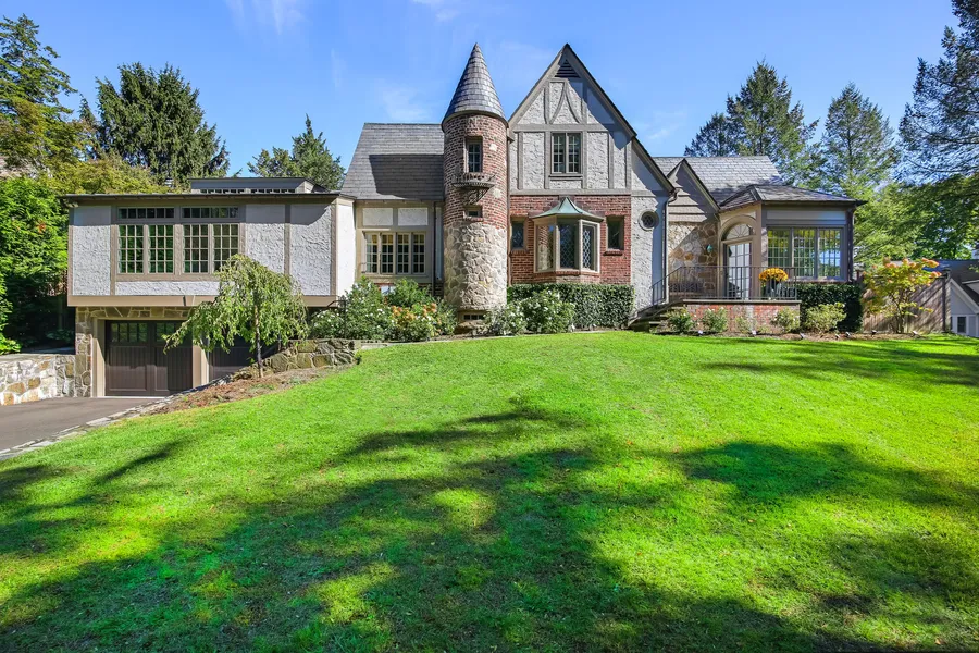 Welcome to this beautifully renovated home, centrally located with easy access to all schools, town amenities and trains. This home effortlessly blends historic architectural elements such as a stone, slate, brick and copper exterior with the luxuries of modern living. A light-filled entry way immediately opens into two gracious living areas with high ceilings and a stunning floor to ceiling see-through fireplace. Natural light encompasses the entirety of the home. The newly renovated eat-in kitchen, with high end appliances, clever pantry and bar area overlooks a lovely backyard patio and gardens perfect for indoor/outdoor living and entertaining. There is a formal dining room and main floor bedroom with full bath and closet which can also be used as an additional office or other. More.. The second floor offers 4 bedrooms inclusive of a bright primary bedroom, walk-in closet and spacious private bathroom. A recent two level addition includes a great room with vaulted ceilings, a soaring stone gas fireplace, and a private office/bedroom with french doors flowing nicely to the back patio plus a 2 car garage with electric car charger, gym and storage space. A hidden solar array on the roof provides ~50% of this home's power. This is a must see.