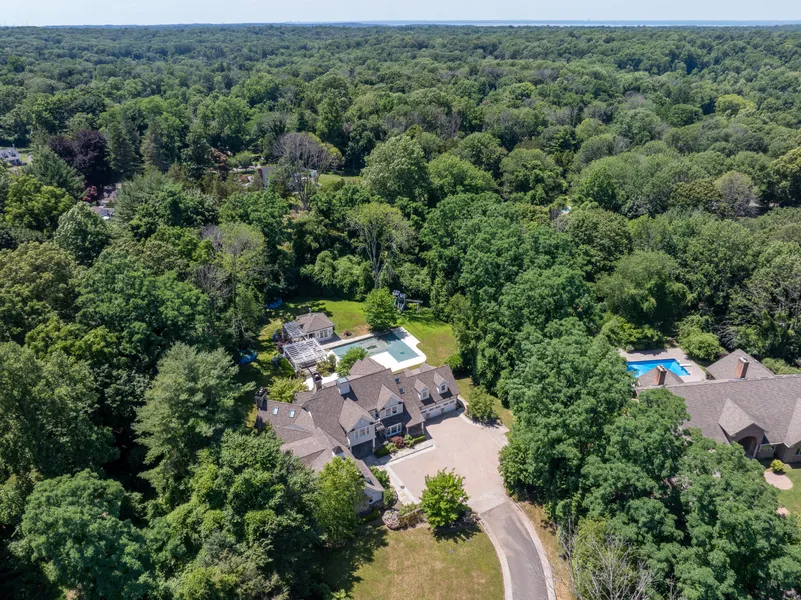 Situated in the picturesque Village of Lloyd Harbor, 7 Van Wyck Lane offers an unparalleled blend of elegance and comfort on two beautifully landscaped acres. This stunning shingle style colonial home features a two-story entry foyer with custom millwork and a wonderful sense of design. The grand principal rooms offer an abundance of natural light and gleaming hardwood floors. The formal dining room with raised panel and coiffured ceiling detail is perfect for intimate gatherings. Just off the foyer is a full bar with sink, refrigeration and ample storage. The gourmet, chef's kitchen, is equipped with high-end appliances, large center island, a charming sitting area with fireplace, plenty of space for dining. The great room with truss detail and a fireplace opens directly into the living room and hall. Easy access to the patios and grounds from the kitchen and mudroom. The master suite, located on the main floor is a luxurious retreat, boasting a fireplace, a spa-like bath and two walk-in closets. Three additional en-suites, along with a bedroom and hall bath complete the second floor. The exterior is a private oasis, complete with an inground pool, a cabana, an attached pergola, and a wet bar. An exterior fireplace and hot tub add to the outdoor living spaces, surrounded by lush landscaping and mature trees. Located on a serene, tree-lined street, this home also offers beach access (dues required), making it a perfect sanctuary for relaxation and entertainment. CSH SD#2. Lloyd Harbor Park, Beach, Tennis and Mooring (dues required).